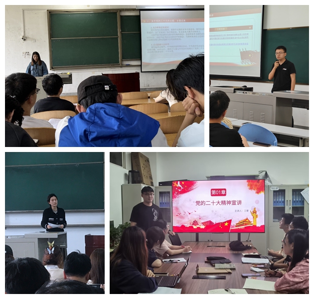 宣讲会上,各支部书记紧紧围绕党的二十大报告起草背景、党的二十大报告全文、习近平新时代中国特色社会主义思想等方面对党的二十大精神作了深入、全面的讲解,并着重阐述了党的二十大报告的新观点、新论断、新思想。同时,各支部重点学习了“教育、科技、人才是全面建设社会主义现代化国家的基础性、战略性支撑”“深入实施科教兴国战略、人才强国战略、创新驱动发展战略”部分内容,强调了我们党对教育、科技、人才的高度重视,深刻揭示了建设教育强国、科技强国、人才强国的内在联系,并表示只有加快建设教育强国,才能为建设科技强国、人才强国涵养源头活水。在最后的研讨环节中,每一位同学都能结合自身学业情况分享自己的所学所思所悟,紧扣党的二十大精神主题,传达出对党的忠诚、对祖国的热爱以及对信仰的坚定。