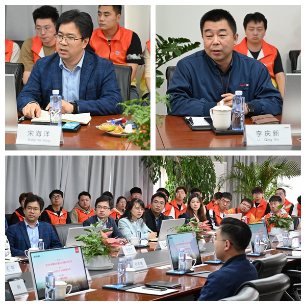 李庆新对宋海洋一行表示热烈欢迎,并将企业的基本情况、发展历程、业务分布、企业文化及发展理念等方面进行了简单介绍。他表示,企业秉承稳健可靠、科技引领的品牌定位,聚焦科技创新,构建单晶硅片、电池组件、工商业分布式解决方案、绿色能源解决方案、氢能装备五大业务板块,针对目前的发展规模和趋势,企业对于高素质人才的需求是非常迫切的,隆基班的成立非常及时,既为学生解决了就业问题,又为企业注入了新鲜血液,为学生提供了更为广阔的发展平台和就业机会,真正实现了学校企业学生三赢的局面,希望双方能继续拓展人才培养途径和方式,全面推动校企深度融合。