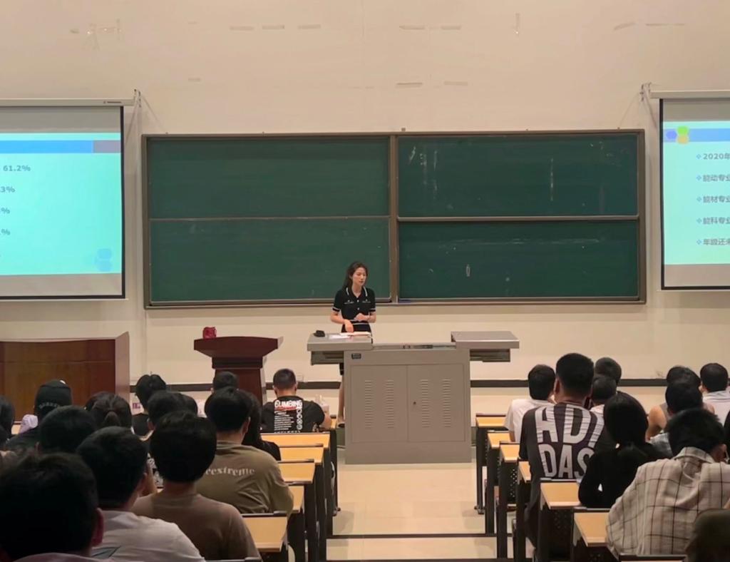 随后,靳晨璐具体分析了各专业的学业成绩及四六级通过情况,并从当前就业抉择、就业需要注意的因素、考研考公和求职应聘准备等多个方面对同学们进行了具体指导。她希望同学们要能够明确自己的职业规划,改变传统的就业理念,多元化拓宽自己的就业空间。