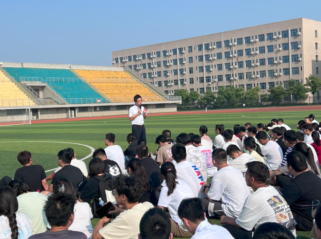 为热烈欢迎2023级新生,让新同学们之间加深了解,97日上午,学院学生工作办公室主任马武军、辅导员卢筱佳与团委、学生会成员在邑校区东区田径场组织开展了新生破冰活动,2023级全体同学参加。活动伊始,各班在学院学生干部的带领下通过各种游戏环节加深了彼此之间的认识,消除了陌生感。随后,马武军通过生动、深入、具体的纵横比较,为新生开启“大学第一课”,他引用鲜活的案例引导青年学生深刻认识并回答“要到哪里去”的方向道路之问以及“要成为什么样的人”的理想未来之问。在互动环节中,马武军对同学们大学期间学习、生活、竞赛、交友等方面给出了中肯的建议,他希望新生要树立远大理想,奋发图强、刻苦学习,努力成长为德智体美劳全面发展的新时代青年。
