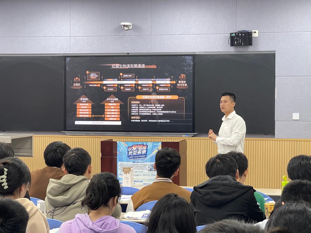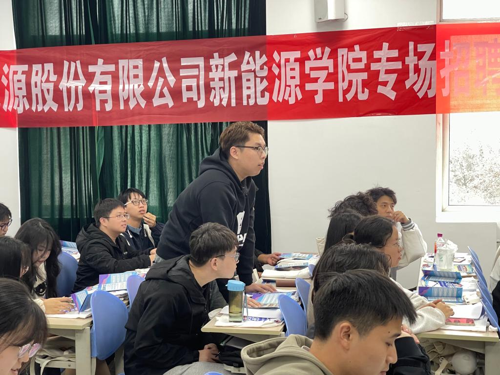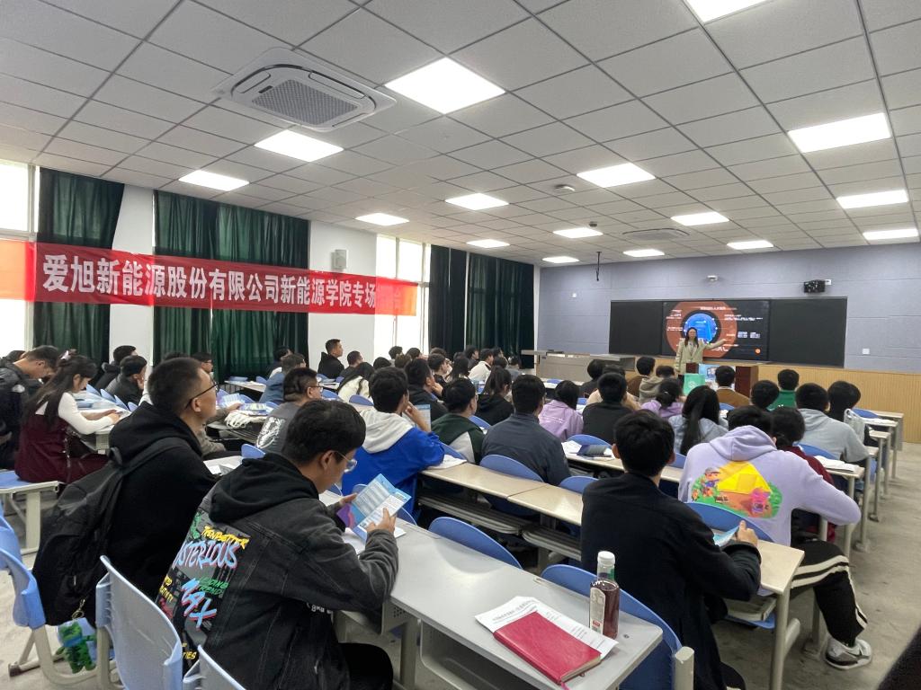 10月12日下午,学院在鄠邑校区A207教室进行爱旭新能源股份有限公司专场招聘会,宣讲会现场同学们踊跃参与互动,现场积极投递简历并进行现场面试。