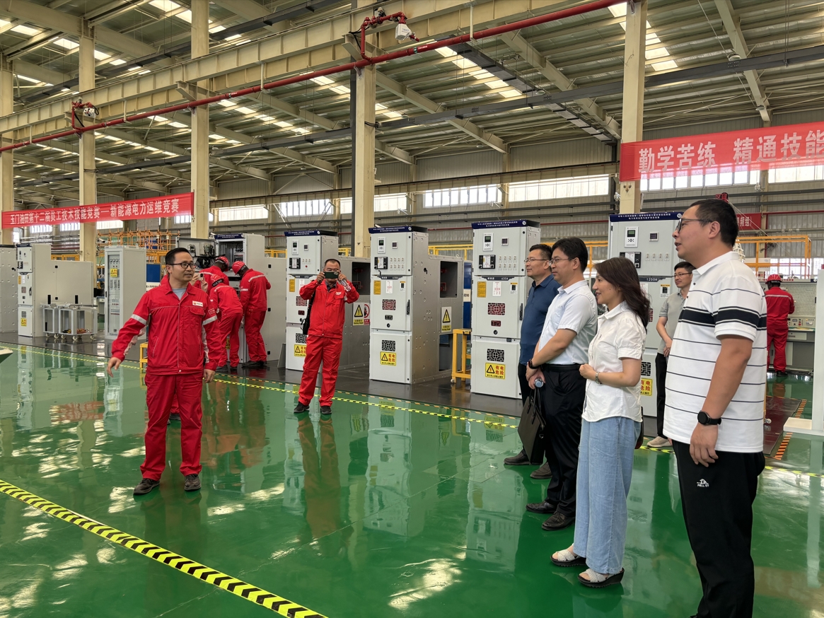 8月5日下午,我院一行人在玉门油田公司新能源事业部相关负责人的陪同下一起走访了玉门油田培训基地,双方就学生实习实训、校企培训合作等事宜进行了深入交流。8月6日,我校一行走访了中国石油玉门东300MW光伏电站、玉门油田水电厂绿氢制氢站、中国石油第一个电化学储能电站——玉门油田200兆瓦光伏并网电站、中国石油第一个国网系统外新能源计量中心——国家能源计量中心(电力)酒泉分中心、玉门油田第一座太阳能综合利用试点示范项目——老君庙采油厂太阳能综合利用试点示范项目等单位,双方就玉门油田新能源发展需求、平台共建和技术攻关等方面进行了具体的交流。
