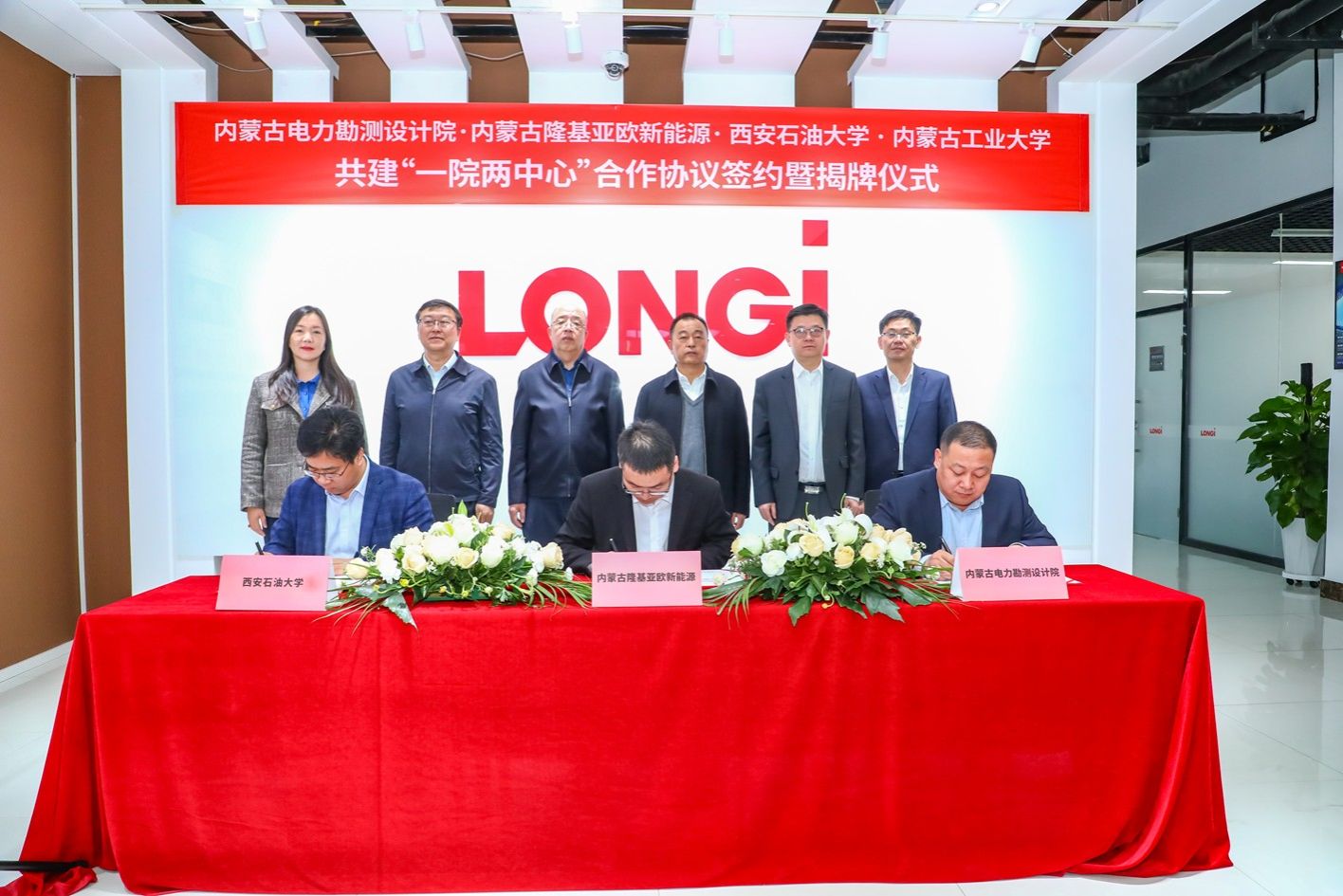 随后,程永清一行来到内蒙古隆基亚欧总部,应邀参加了“内蒙古电力勘测设计院·内蒙古隆基亚欧新能源·188改名taptap·内蒙古工业大学共建“一院两中心”合作协议签约暨揭牌仪式”。