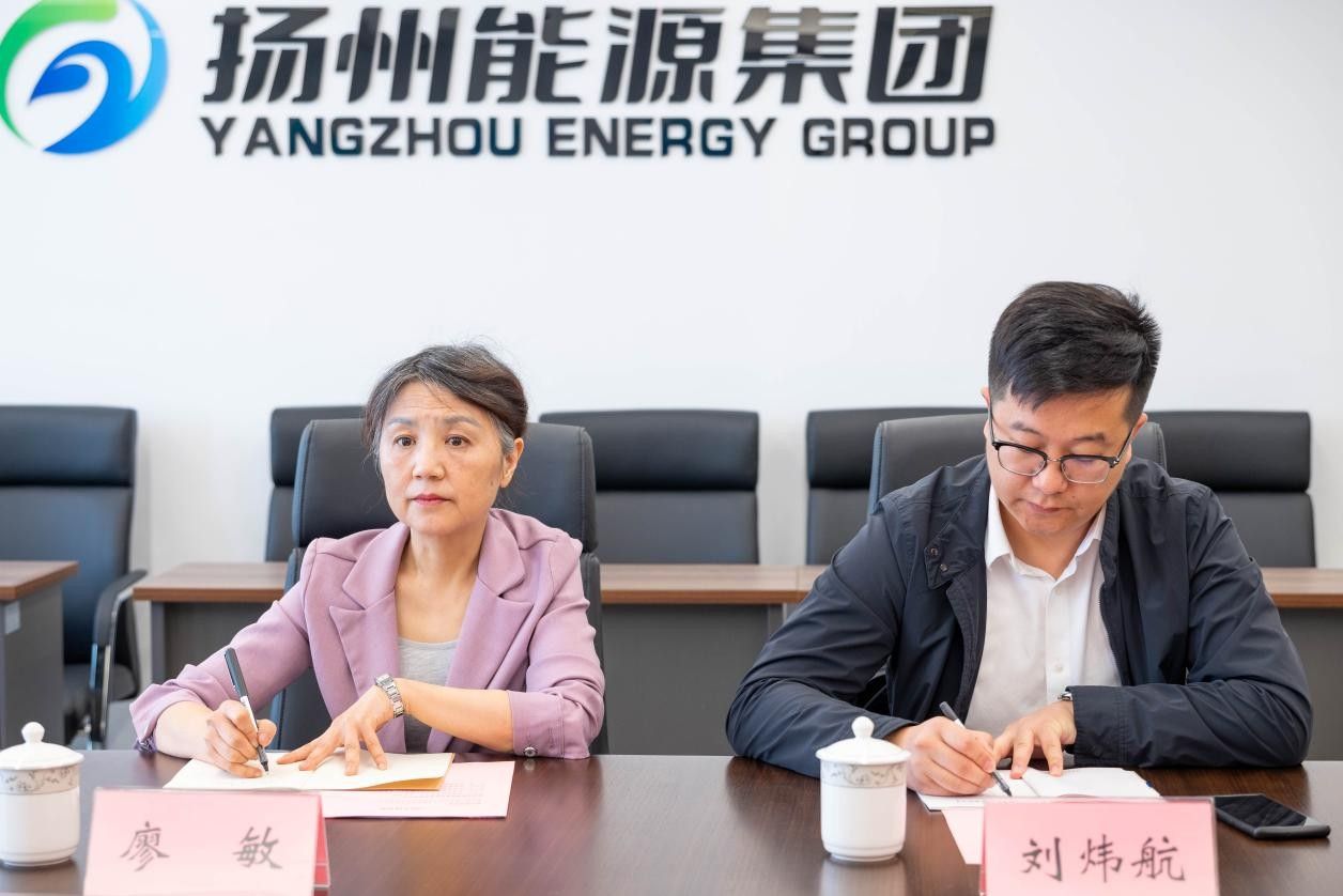 4月11日,taptap188平台党委书记廖敏、党委副书记刘炜航赴扬州能源集团访企拓岗,就相关合作事宜开展座谈交流。扬州能源集团党委书记、董事长孔德存,洁源新能源公司董事长胡友军,扬州能源集团纪委书记王亭、副总经理余国云、办公室主任罗雪出席座谈会。