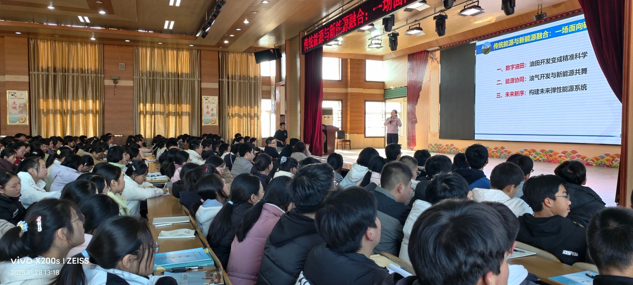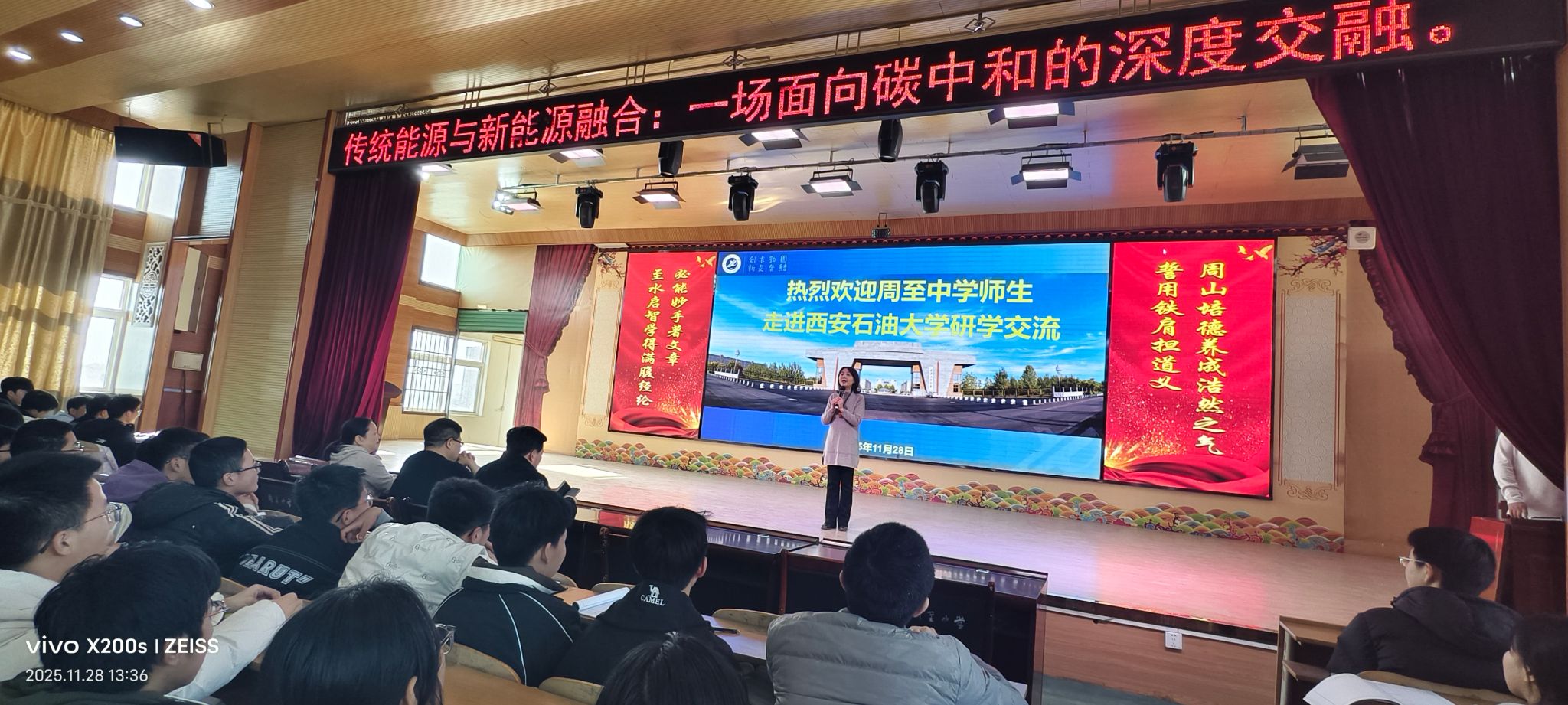 11月26日和28日,在校友蔡乾锋教授的大力助力下,taptap188平台党委书记廖敏一行四人赴周至中学和周至第二中学开展科普宣传。余华贵副教授为师生做了《传统能源与新能源融合》的专题讲座,生动地讲解了我国能源战略布局,鼓励同学们刻苦学习,实现能源报国的理想。廖敏书记向学生们介绍了学校的历史和发展。蔡乾锋教授和大家分享了自己成长的经历,鼓励同学们从小立大志,打好学习基础。周至中学800余名,周至二中500余名学生先后在现场聆听了讲座。讲座现场还设有互动环节,气氛非常热烈。