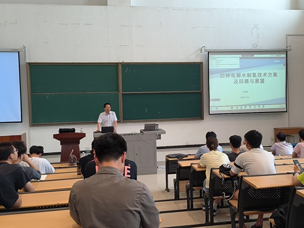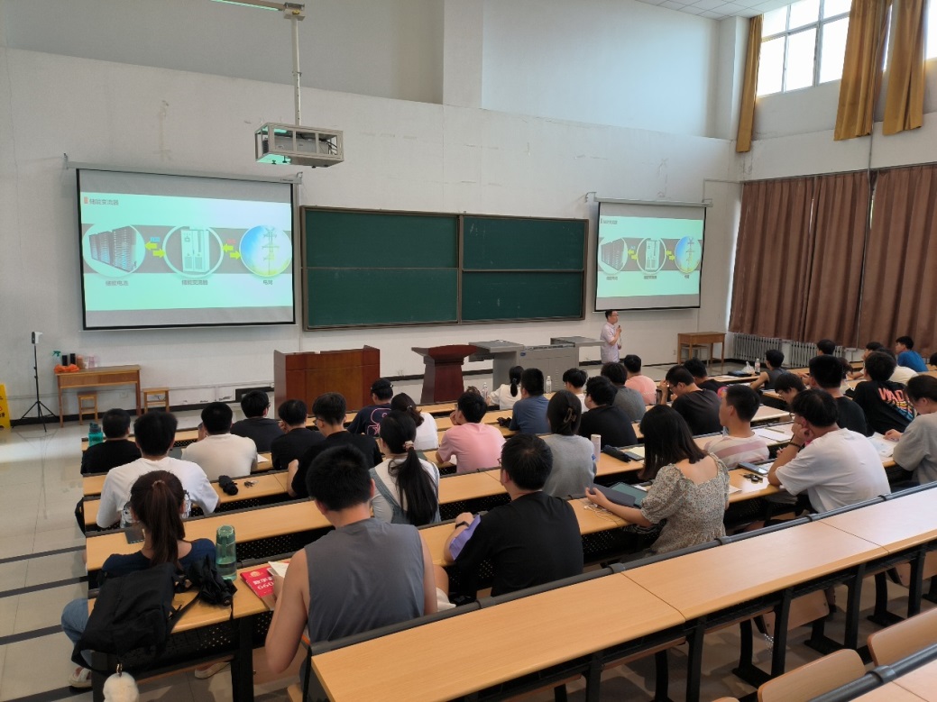 张永强副院长相继作了“锂离子电池的制备工艺”“燃料电池结构与功能”“四种电解水制氢技术方案回顾与展望”3个主题报告,极大地丰富了学生的新能源领域知识,提高了学生们对新能源材料与器件专业实际生产过程的兴趣,拓宽了学生的专业视野。