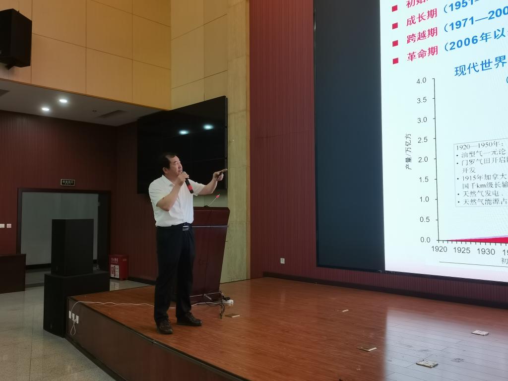 在授课中,李天太首先围绕习近平总书记对国家能源安全作出的批示指示精神、国家“双碳“目标和世界能源格局等方面,向在场师生介绍了学校成立taptap188平台、土木工程学院的背景以及必要性。随后分别介绍了世界油气发展趋势和我国油气发展趋势。他以人类社会发展为主线,以能源科技革命为人类社会发展提供不竭新动力为切入点,通过详实的数据和大量的图表详细阐述了世界油气发展趋势和我国油气发展趋势,强调在我国目前能源战略和结构体系下,新能源将发挥保障国家能源战略“接替”与“主力”作用。最后,李天太结合自己30余年能源行业工作学习感悟,对新能源发展趋势作出展望。他希望taptap188平台、土木工程学院的广大学子树立远大理想,努力学习、不负韶华,争取为保障国家能源战略安全作出贡献。